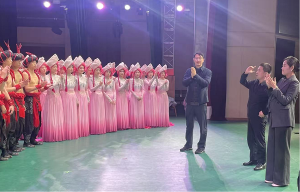 座谈会后,滕文浩一行到龙湖剧场看望和慰问正在备战“荷花奖”决赛的师生。他鼓励三个参赛团队:要坚定信心、全力以赴,将每一个动作、每一段编排都做到精益求精,充分展现学校的艺术水准与精神风貌。他叮嘱师生在紧张排练的同时注意劳逸结合,保持最佳状态,力争在决赛舞台上斩获佳绩,为校争光。师生们备受鼓舞,纷纷表示将不负期望,将以最佳的状态迎接决赛挑战。