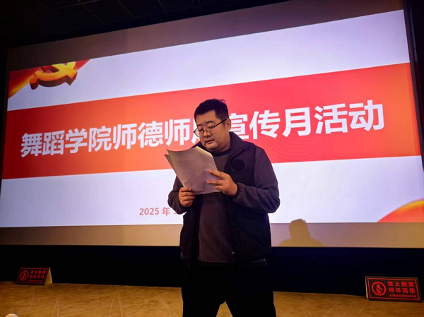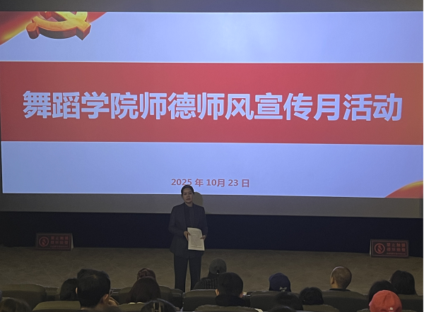 活动伊始,舞蹈学院党委书记刘洋带领全体师生学习习近平总书记给全国特岗教师代表重要回信精神,号召广大教师切实增强责任感使命感,全面落实立德树人根本任务,大力弘扬教育家精神,努力培养出更多德智体美劳全面发展的社会主义建设者和接班人。随后,以教育部网站公开曝光的“违反教师职业行为十项准则典型案例”为反面教材,开展师德师风警示教育,强调师德红线不可逾越,要求全体教师以案为鉴、警钟长鸣。