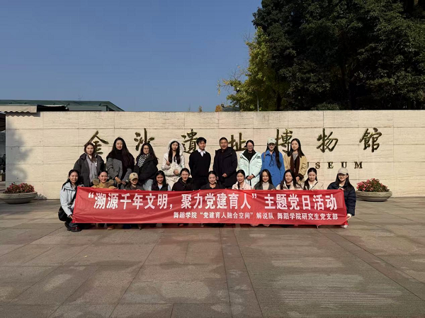 为深化党建与专业育人深度融合,锤炼党性修养,厚植文化自信与责任担当,11月27日,舞蹈学院“党建育人融合空间”解说队与研究生党支部在学院专职组织员邓晓彬老师的带领下,赴成都金沙遗址博物馆,开展“溯源古蜀文明,聚力党建育人”主题党日活动。