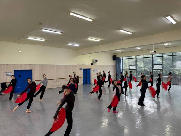 排练期间正值寒假假期,参演同学主动留校集训,部分同学主动改签回家行程,全身心投入节目打磨。面对《风华鉴》中变脸技艺与舞蹈创新结合的全新挑战,同学们从零学习、反复打磨,在编导指导下逐一攻克技术难点,精益求精雕琢每一个动作、每一处细节,以严谨态度追求舞台呈现的极致效果。